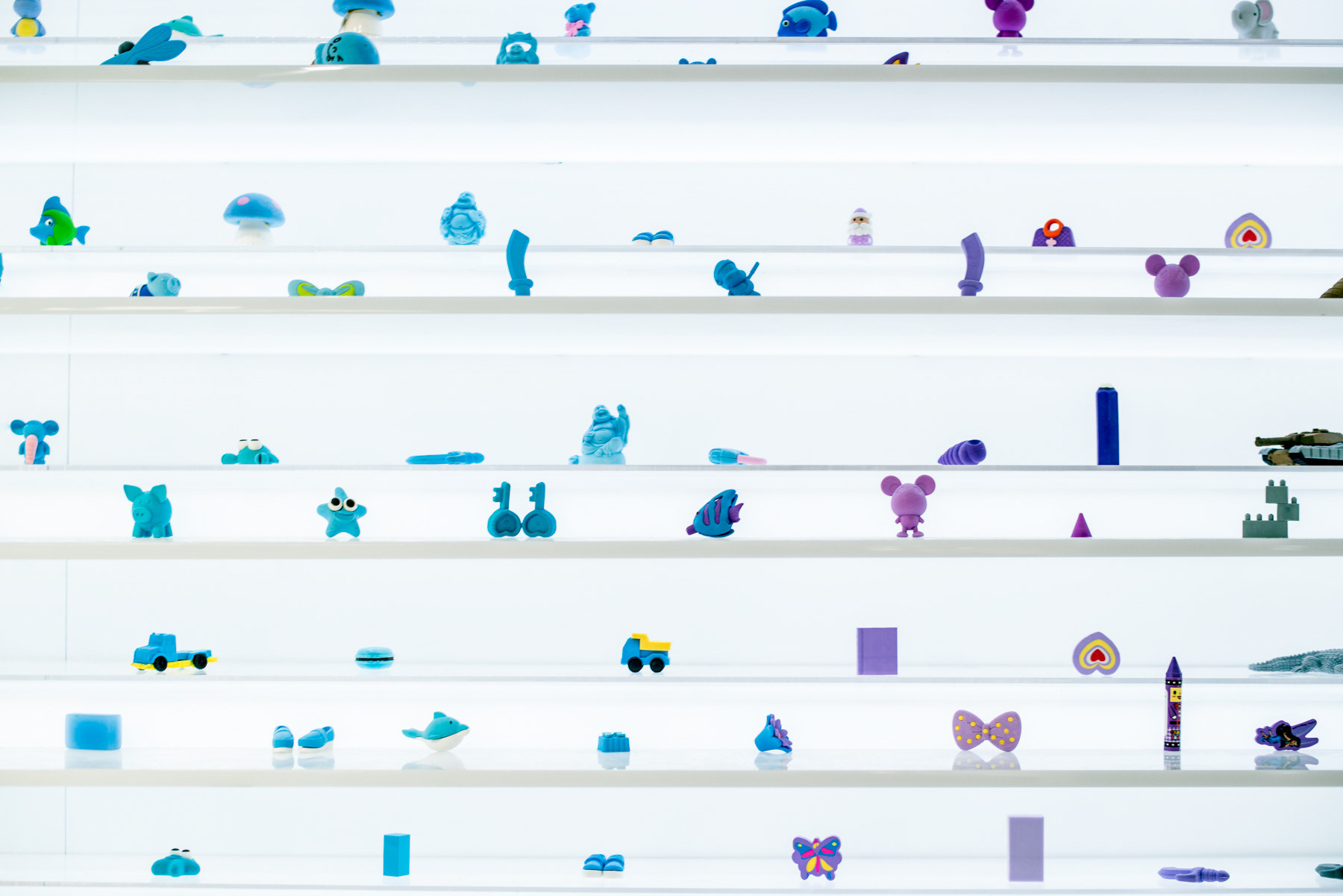 在我们的消费者访问里,我们发现一正橡皮擦不只是功能性的,更重要它扮演了玩伴的角色。这些展品在孩童记忆里都有着一段故事。我们把家长和孩子的名字放在标贴上,包括背后的故事。每一件展品都是一个时空胶囊,一个写照。