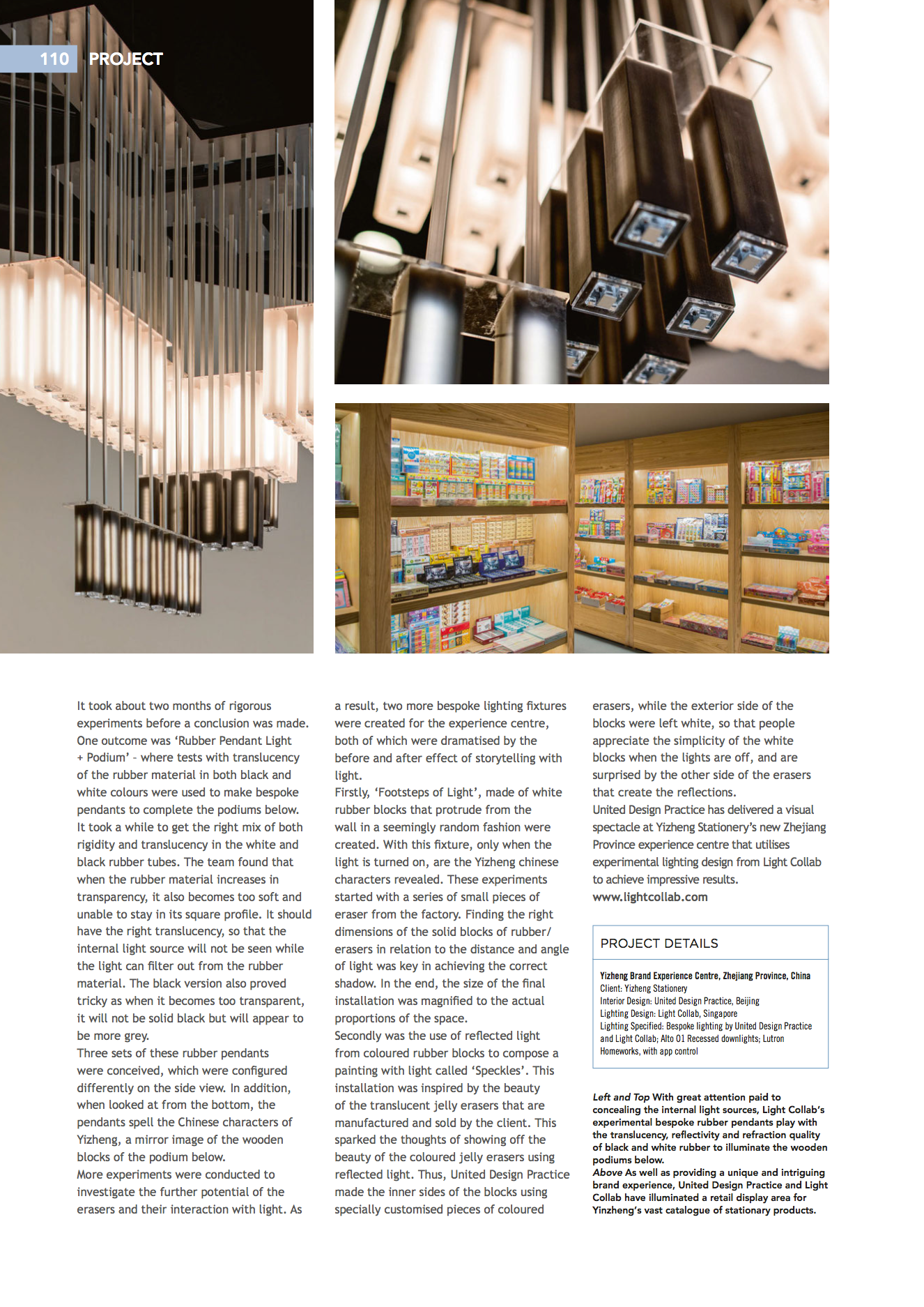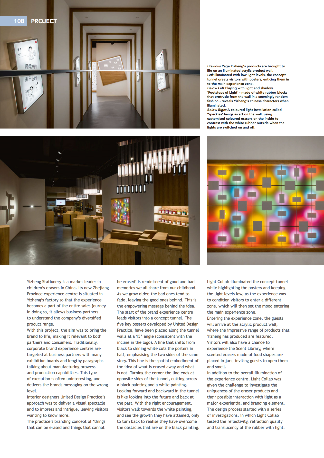 United Design Practice 的设计作品《一正品牌体验馆》刊登在专业照明设计杂志 mondo arc .